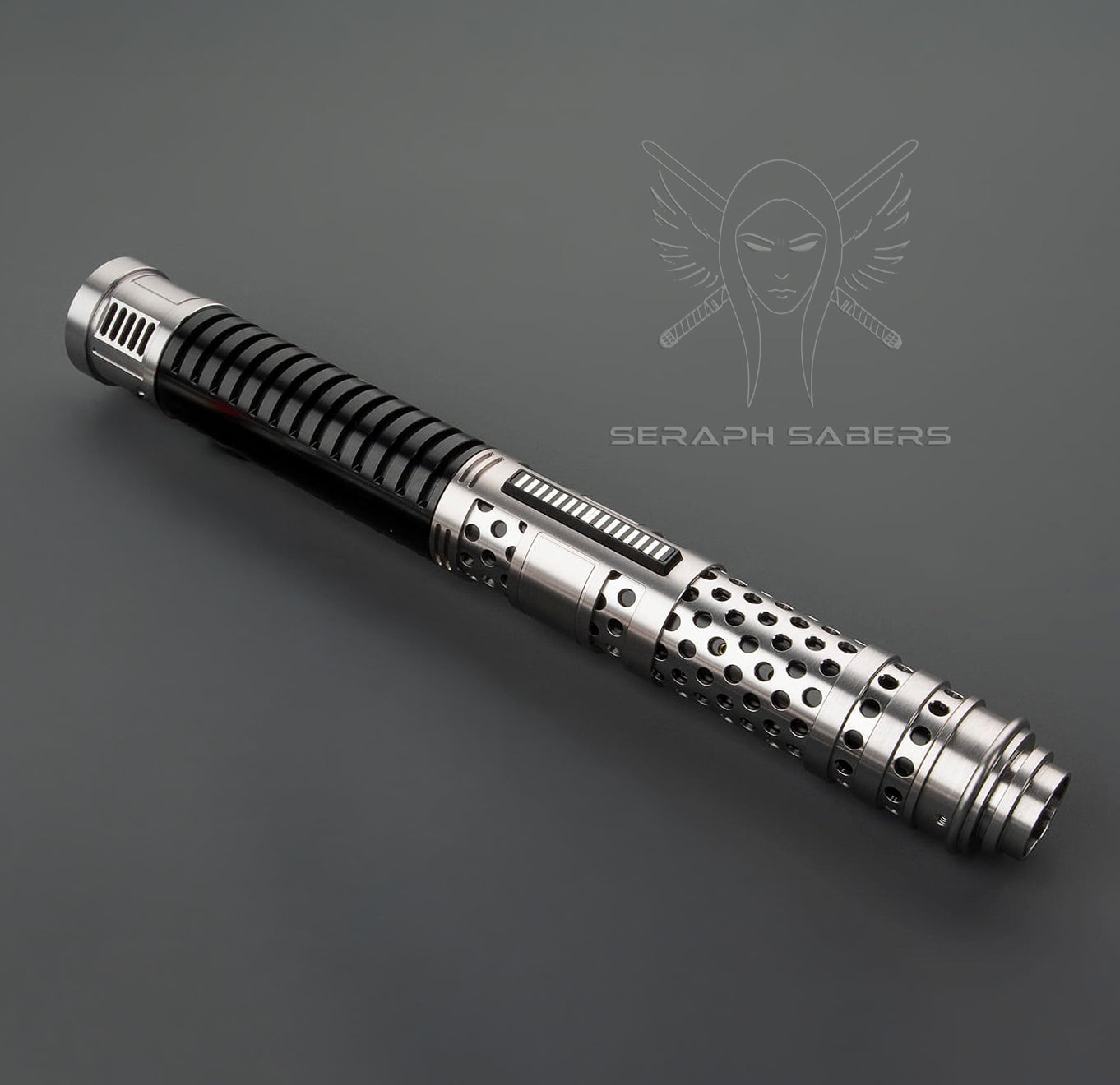 A beautiful hilt, made from very strong aircraft aluminium, this metal hilt has a nice "real feel" in the hand. Well weighted and balanced for spinning and duelling, and lovely as a display piece.